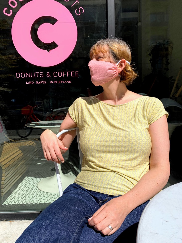 Today I want to share a new make that may look simple, but has some complexity under the hood. I recently made my first Kathryn Top by Itch To Stitch and especially liked the short sleeves. The Edie Top by Sew Over It is another knit top I really liked, but I’m not keen on its long sleeves. I had a thought to combine the cute and simple neckline of the Edie Top with the short sleeves of the Kathryn. Together it sounds kind of like a nun — Sister Edie-Kathryn — but fits great!