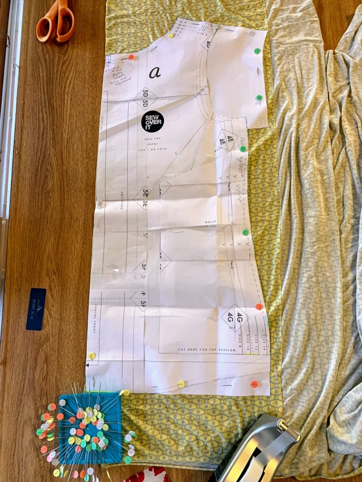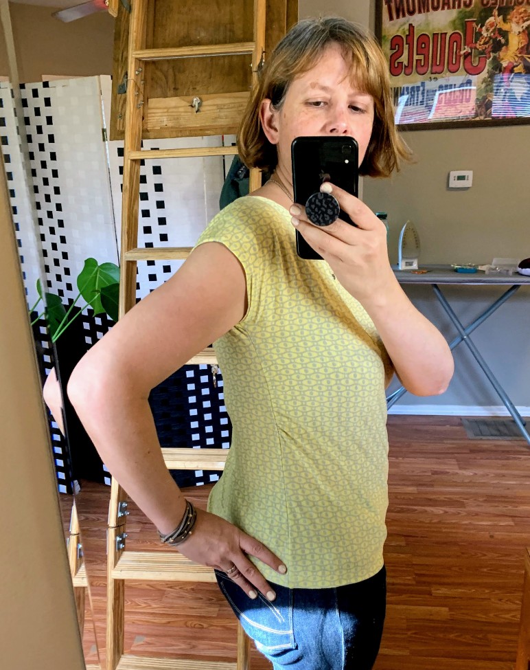 In May, I had put in significant time modifying the Edie Top to do a dartless FBA, which is my favorite thing to do with knit tops now. This technique lengthens the front and adds gathers on the sides with three lines of stitches, rather than adding darts.