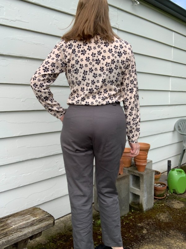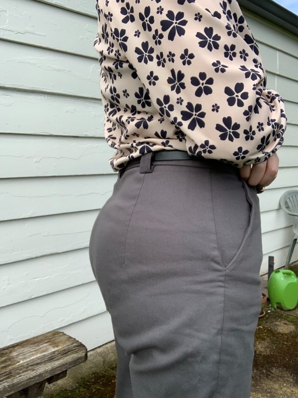 I’ve worn these trousers to work twice now and they feel great. The waist is much higher than the Stitch Fix pants; I would probably lower it next time by just an inch. The fabric is very prone to wrinkling, so I might also go with a cotton-poly blend next time, but would still stay away from any spandex. -rp